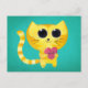 Cartão Postal Gato Romântico Bonito com Coração Sorridente