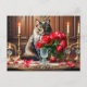 vida romântica e estática com um gato rodeado por buquetes de rosas, frutas e flores, perfeita para o Dia de os namorados.