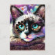 Cartão Postal Gato Siamês Croco Floral Roxo Turquesa Branco