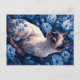 Um gato siamês com olhos azuis flagrantes se senta em meio a um jardim de flores azuis. O pelo branco do gato contrasta lindamente com as cores azuis profundas das flores, criando uma cena visualmente cativante. O olhar do gato é direcionado para a direita, acrescentando um senso de mistério e intrigação à imagem. O fundo é um borrão azul e verde, sugerindo uma atmosfera serena e pacífica.