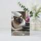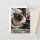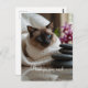 "Expresse agradecimentos sinceros com este cartão postal encantador com um gato Siames sereno a desfrutar de um momento de spa luxuoso. A sua presença suave e refinada e o seu charme caprichoso tornam-no a forma perfeita de dizer 'obrigado' com estilo."