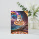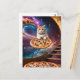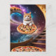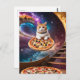 Cartão Postal Gato Surreal numa Pizza Voadora