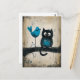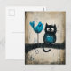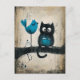 Cartão Postal Gato Whimsical e Pássaro em uma Ramificação