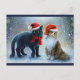 Gato festivo está pronto para o fundo de neve de inverno com o Papai Noel e o cachecol.
