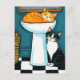 Cartaz com tema de gato bonito, com ilustração de um gato no banheiro. Uma pastilha de gengibre dorme pacificamente na pia e um smoking fica embaixo olhando com grandes olhos verdes. Perfeito para enviar para amantes de gatos ou para adicionar à sua coleção. Ilustração © Lisa Marie Robinson. Todos os direitos reservados.