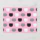 Repete o padrão de gatos e gatinhos preto, brancos e cinzas de kawaii em um plano de fundo rosa para bebês.