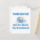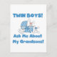 Avós orgulhosas de meninos gêmeos vão adorar este fofo design azul com dois coelhinhos em um berço azul e texto azul que diz "Pergunte-me sobre meus netos!".