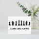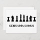 Este postal apresenta uma bela design de peças de xadrez com o slogan "GENS UNA SUMUS" que significa "Somos uma pessoas" em latim. A intrincada design e tipografia fazem dela uma adição perfeita a qualquer coleção de amantes do xadrez. Quer você esteja enviando para um amigo ou guardando para si mesmo, este cartão postal certamente impressionará.