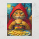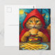 Cartão Postal Ginger Cat com Cheeseburger e Fries