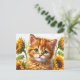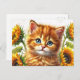Cartão Postal Ginger Cat com Girassol Watercolor