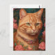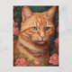 Cartão Postal Ginger Tabby Cat e Rosas