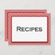 Este cartão de receitas divertido em preto, vermelho e branco tem uma sensação retroranos 50. É uma maneira perfeita de gravar suas receitas favoritas... ou compartilhar com amigos e familiares... um presente de excelente seria um pacote para a nova noiva, a primeira vez proprietária de casa, ou um jovem adulto se mudando sozinho pela primeira vez.