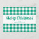 Cartão Postal Gingham Verde Chequeia o Feliz Escrito de Natal