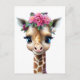 Cartão Postal Girafa-bebê bonita com flores e Holly