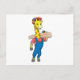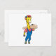 Cartão Postal Girafa como Carpinteiro com Madeira
