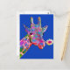 Envie um cartão-postal como nenhum outro. Esta design de pop de uma girafa colorida com um girassol contra fundo azul é certamente um prazer para todos na sua lista de discussão.