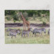 Cartão Postal girafa e zebras