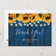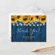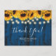 Cartões de Agradecimento Casamento Rústico Girassóis Azul Marinho.