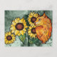 Cartão Postal Girassóis Ginger Maine Coon Cat