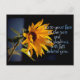 Um girassol amarelo sobre fundo azul escuro. Com a citação: " Rode seu rosto para o sol e as sombras vão cair para trás."