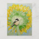 Natureza no Verão. Um pequeno Chickadee descansando atrás de um Girassol.