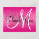 Cartão Postal Girly Rosa Brilho Gradiente Monograma Obrigada