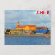 Vista da cidade de Ģlin, Província de Llanquihue, Chile, do Rio Maulavi. Inclui a igreja Parroquia Nuestra Señora del Rosario.