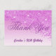 Cartões de agradecimentos glamouroso com brilho rosa a cair, gradiente rosa e estrelas brilhantes.