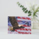 Uma imagem lindamente patriótica de uma ave americana da águia calva soprando sobre a neve cobriu montanhas, em uma bandeira americana ondulando junto com neve e gelo congelados. A foto da bandeira congelada foi tirada pelo fotógrafo de olhos afiados, Rob Boyer.