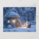 Cartão Postal Gnome with a Lantern Outside a Snowy Stone Hut