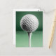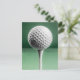 Uma bola de golfe branca numa teia branca em frente a um fundo verde.