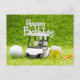 Cartão Postal Golf Birthday com carrinho de golfe e cerveja para