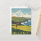 Um cartão postal antigo, representando o golfe na Irlanda, mostra as passagens verdes que rolam pelas vias do mar, o traje clássico e um charme nostálgico que captura o espírito das ligações tradicionais entre o golfe.