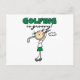 Uma figura de palito feminina de golfista com taco e texto que diz "Golfe é Divertido" em camisetas de golfe, moletons, canecas, ímãs, cartões, adesivos, mousepads, chaveiros, garrafas de água e mais.