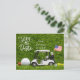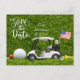Cartão Postal Golfe salve a data com carrinho de golfe e Bandeir