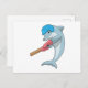 Cartão Postal Golfinho no Cricket com morcego de críquete
