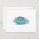 Cartão Postal Golfinho no Surfe com Surfboard