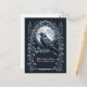 Defina o tom para um clima noturno místico com este cartão postal gótico de corvo. Os visuais apresentam uma silhueta de lua cheia impressionante, combinada com detalhes intricados de videira renderizados em uma paleta de azul meia-noite profundo. É a maneira perfeita de celebrar um cumprimento assustador de Halloween ou um presente atencioso para um fã de literatura gótica.