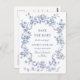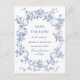 Elegante Cartão Postal Vintage Azul Jardim Francês Floral Casamento Salve a Data.