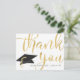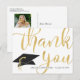 Cartão postal moderno de agradecimento de foto de formatura personalizado com o nome do formando e o ano da turma na frente, apresentando um THANK YOU em ouro metálico falso em tipografia de caligrafia chic e um chapéu de formatura. O verso apresenta uma foto do formando e oferece a opção de pré-imprimir sua mensagem de agradecimento ou optar por excluir o texto de exemplo para deixar a área em branco para anotações pessoais manuscritas de agradecimento. ASSISTÊNCIA: Para obter ajuda com modificação ou personalização do design, alteração de cor, transferência do design para outro produto ou se você gostaria de itens coordenados, entre em contato com o designer ANTES DE FAZER O PEDIDO através da guia de MENSAGEM do Zazzle Chat abaixo ou envie um e-mail para makeitaboutyoustore@gmail.com.