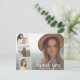 Diga obrigado ao estilo com este cartão-postal com 4 fotos de graduação acentuadas com uma letra chic manchada de script que lê "Obrigado" ou muda para seu texto personalizado. Adicione seu nome e data de conclusão à frente e digite sua nota de agradecimento personalizada no verso. Se preferir escrever manualmente a sua nota, basta apagar o texto para criar espaço para a sua mensagem. Seus convidados adorarão ver fotos de sua graduação/mais velho e receber sua nota de agradecimento atenciosa.
