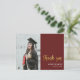 Graduação de Foto por Caligrafia Dourada Vermelha Moderna Obrigado postal. Celebre sua festa de formatura com este cartões de agradecimentos elegante e festivo de ouro brilhante com belas caligrafias manuscritas. Todos os textos estão pré-organizados para que você personalize fácil e rapidamente com seus próprios detalhes.