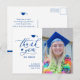 Cartão Postal Graduação de Foto do Script Elegante Azul Obrigado