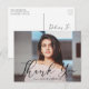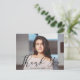 Cartões de agradecimento de graduação elegantes e sofisticados com uma fonte de caligrafia moderna preta sobreposta à foto de formatura favorita do graduado. Personalize os cartões de agradecimento de graduação modernos adicionando o nome do graduado, endereço de devolução e sua mensagem personalizada.