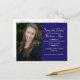 Cartão postal de graduação personalizada azul "Salvar a Data". Personalize com seu próprio texto e foto.