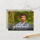 A palavra "formando" em um roteiro branco elegante junto com o nome do formando e o ano de classe SAVE OS cartões postais DATE para sua Festa de formatura ou Cerimônia de Graduação. Coloque sua foto na frente - adicionamos uma camada preta de gradiente na parte inferior para que o "formando" seja legível sobre sua foto. Adicione a mesma foto ou diferente no lado do endereço traseiro - adicionamos uma camada de fotos suave à imagem traseira para facilitar a leitura das informações. Mais designs na nossa coleção.