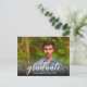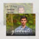 A palavra "formando" em um roteiro branco elegante junto com o nome do formando e o ano de classe SAVE OS cartões postais DATE para sua Festa de formatura ou Cerimônia de Graduação. Coloque sua foto na frente - adicionamos uma camada preta de gradiente na parte inferior para que o "formando" seja legível sobre sua foto. Adicione a mesma foto ou diferente no lado do endereço traseiro - adicionamos uma camada de fotos suave à imagem traseira para facilitar a leitura das informações. Mais designs na nossa coleção.
