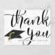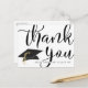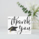 Obrigado de graduação personalizado - você pode fazer um cartão postal personalizado com o nome do formando e o ano de classe na frente, juntamente com um cheio sangrado de tamanho excessivo. OBRIGADO com um design de boné de formatura preto e ouro. O lado oposto oferece a opção de pré-impressão da mensagem obrigado-você ou opta por excluir o texto de amostra para deixar o vazio de área para notas de apreciação manuscritas. Entre em contato com o designer se quiser que este design seja modificado ou em outro produto.