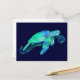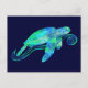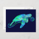 Uma tartaruga marinha ameaçada pintada em blues e verdes oceânicos.