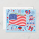 Cartão Postal Gráficos e listras felizes em 4 de julho/azul